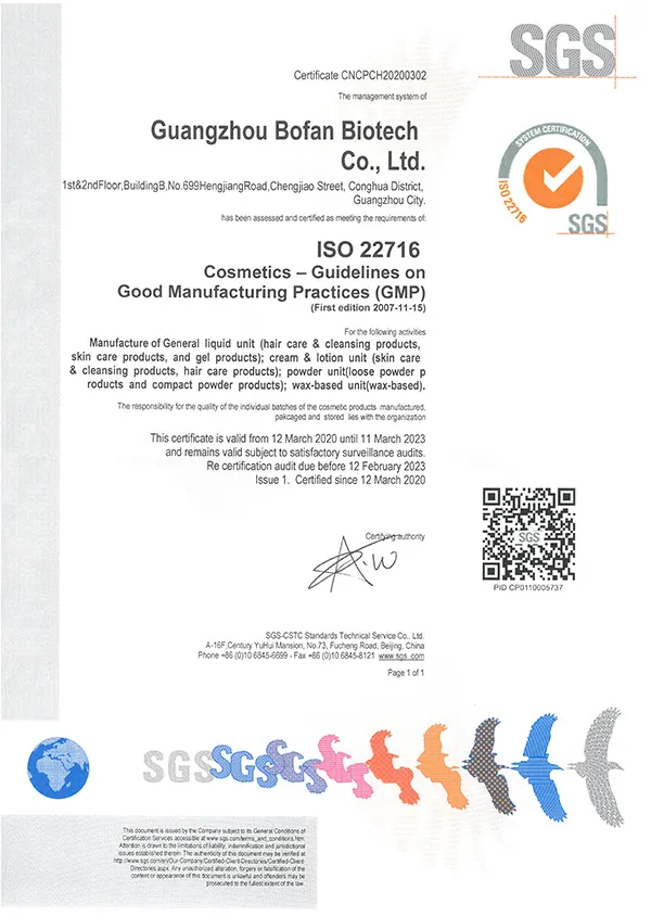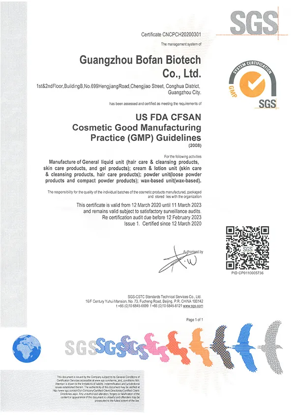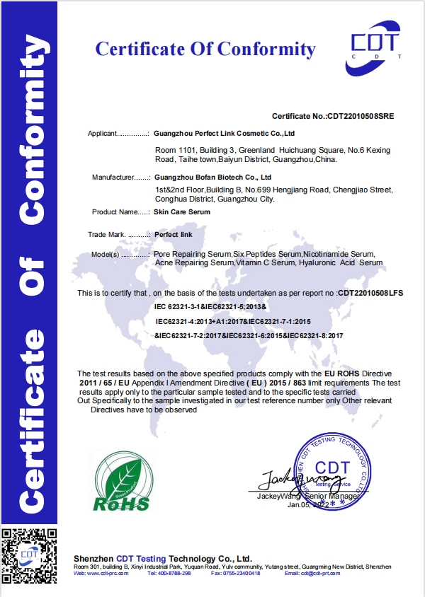 After decades of development, Gzperfectlink become a powerful cosmetics contract skin care manufacturer. We have an independent QA department and our products are exported worldwide and passed rigorous tests such as DERMA testing, CPSR, GMP, ISO 22716 certified, FDA registered, and SGS.
