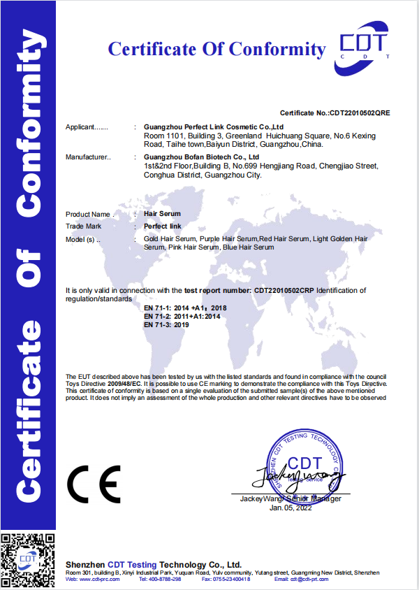 Good qualifications mean good products and services. With 14+ years experience of in contract manufacturing cosmetics, Gzperfectlink’s authoritative R&D department can create a formulation tailored to your specifications. Moreover, we can replicate the formulation based on the sample you sent, to meet your product specifications and requirements.